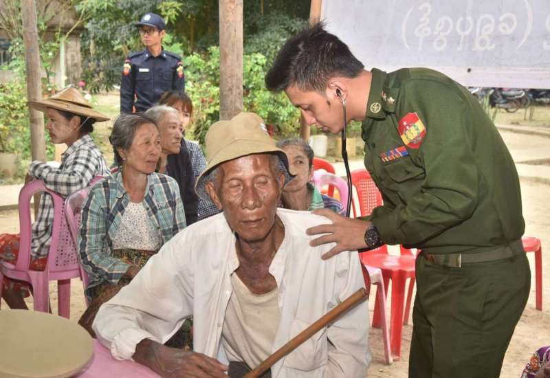 ကမ်းရိုးတန်းဒေသ တစ်လျှောက်ရှိ ဒေသခံပြည်သူများအား ကျန်းမာရေးစောင့်ရှောက်မှုလုပ်ငန်းများ ဆောင်ရွက်ပေးရန်အတွက် တပ်မတော်ပင်လယ်သွား ဆေးရုံရေယာဉ်(သံလွင်)နှင့်အတူ လိုက်ပါလာသည့် တပ်မတော်မှ ပါရဂူများ၊ ဆေးမှူးများ၊ သူနာပြုများနှင့် ကျန်းမာရေးဝန်ကြီးဌာနမှ ပါရဂူများ၊ ဆရာဝန်များ၊ သူနာပြုများပါဝင်သော နယ်လှည့်အထူးကုဆေးအဖွဲ့သည် ယနေ့တွင် ရခိုင်ပြည်နယ်၊ သံတွဲမြို့၊ မောင်ရွှေလေးကျေးရွာရှိ ဘုန်းတော်ကြီးကျောင်း၌ အခြေပြု၍ အနီးပတ်ဝန်းကျင်ကျေးရွာများမှ ဒေသခံပြည်သူ ၄၄၃ ဦးအား ကျန်းမာရေးစောင့်ရှောက်မှု လုပ်ငန်းများ ဆက်လက်ဆောင်ရွက်ပေးသည်။