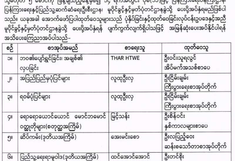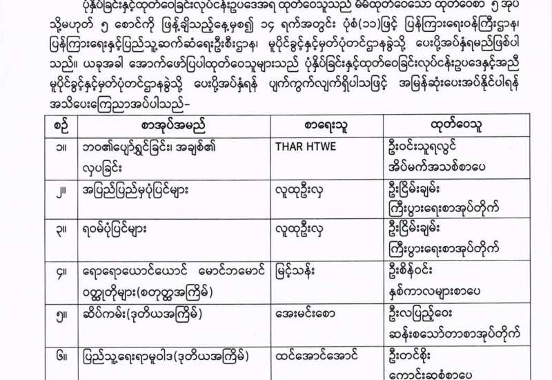 ပုံနှိပ်ခြင်းနှင့်ထုတ်ဝေခြင်းလုပ်ငန်းဥပဒေနှင့်အညီ စာအုပ်စာစောင်များ ပေးအပ်ရန် အသိပေးကြေညာချက်
