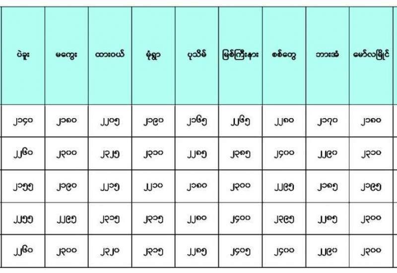 ရန်ကုန်မြို့နှင့်မန္တလေးမြို့အတွက် ရည်ညွှန်းလက်ကားဈေးနှုန်းများနှင့် ပြည်ထောင်စုနယ်မြေ နေပြည်တော်၊ တိုင်းဒေသကြီး/ပြည်နယ် မြို့တော်များအတွက် ရည်ညွှန်းလက်လီဈေးနှုန်းများ