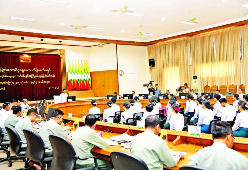 တိုင်းဒေသကြီး/ပြည်နယ်အတွင်းရှိ ရွေးကောက်ပွဲကော်မရှင်အဖွဲ့ခွဲရုံးအဆင့်ဆင့်တို့တွင် တာဝန်ထမ်းဆောင်မည့် ဒုတိယဦးစီးမှူးများ လုပ်ငန်းခွင်အကြိုစွမ်းရည်မြှင့်သင်တန်းအမှတ်စဉ် (၄/၂၀၂၃)ဖွင့်ပွဲကို ယနေ့နံနက်ပိုင်းတွင် နေပြည်တော်ရှိ ပြည်ထောင်စုရွေးကောက်ပွဲကော်မရှင်ရုံး၌ ကျင်းပသည်။