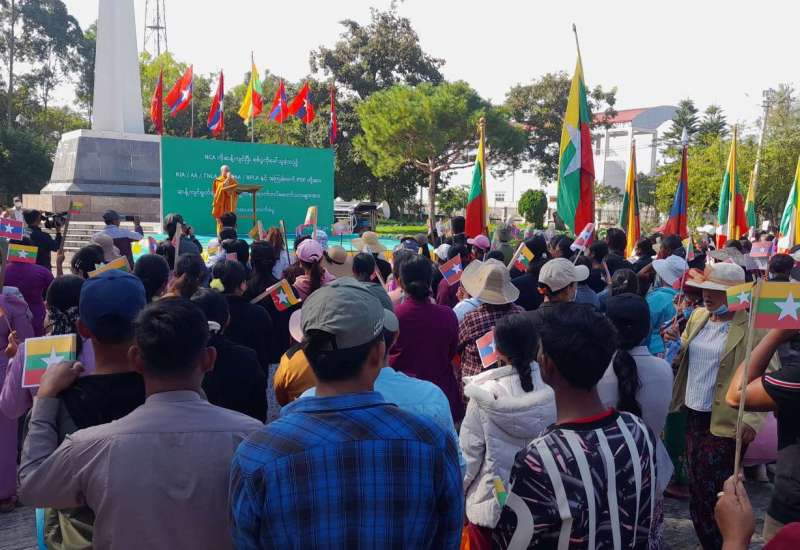 ပြင်ဦးလွင်မြို့တွင် ယနေ့နံနက် ၉ နာရီ ၄၀ မှစ၍ ရပ်ကွက်ကြီး (၁၂)၊ ရေချမ်းအိုးကျေးရွာနေသူ ဦးခိုင်ဇော်နှင့် ပေါက်ကိုယ်တော် ဉူးအရိယာဝံသတို့မှ ဦးဆောင်၍ စစ်မှုထမ်းဟောင်းများ၊ ပြည်ခိုင်ဖြိုးပါတီဝင်များနှင့် ပါတီဝန်းရံသူများ၊ ပြင်ဦးလွင်မြို့ရှိ ရပ်ကွက်/ကျေးရွာများမှ တပ်မတော်ချစ်မြတ်နိုးသူများနှင့် ရွာသူ/ ရွာသားများ စုစုပေါင်းအင်အား (၁၅၀၀) ဦး ခန့်တို့သည် NCA ကိုဆန့်ကျင်ပြီး စစ်ပွဲကိုခေါ်ယူခဲ့သည့် KIA ၊ AA ၊ TNLA ၊ MNDAA ၊ BPLA နှင့် အကြမ်းဖက် PDF တို့အား ဆန့်ကျင်ရှုတ်ချခြင်းနှင့် ရှေ့တန်းရောက်တပ်မတော်သားများအား အားပေးထောက်ခံပွဲကို ခရိုင်အားကစားကွင်းမှ စတင်ကာ ပြုလုပ်ခဲ့သည်။