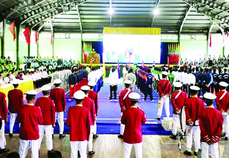 (၅၁)ကြိမ်မြောက် တပ်မတော်ကာကွယ်ရေးဦးစီးချုပ် ဒိုင်း၊ တပ်မတော်(ကြည်း၊ ရေ၊ လေ) ပြေးခုန်ပစ်ပြိုင်ပွဲဖွင့်ပွဲကို ယနေ့ညနေပိုင်းတွင် နေပြည်တော်ကောင်စီနယ်မြေ ဇေယျာသီရိတပ်မတော်အားကစားကွင်း၌ ကျင်းပပြုလုပ်ရာ တပ်မတော်ကာကွယ်ရေးဦးစီးချုပ်ကိုယ်စား နေပြည်တော်တိုင်းစစ်ဌာနချုပ် တိုင်းမှူး ဗိုလ်ချုပ်စောသန်းလှိုင်နှင့်အဖွဲ့ဝင်များ၊ အရာရှိ၊ စစ်သည်၊ မိသားစုများ၊ ဒိုင်အဖွဲ့ဝင်များ၊ ဖိတ်ကြားထားသူများနှင့် ပြိုင်ပွဲဝင်အားကစားသမားများ တက်ရောက်ကြသည်။