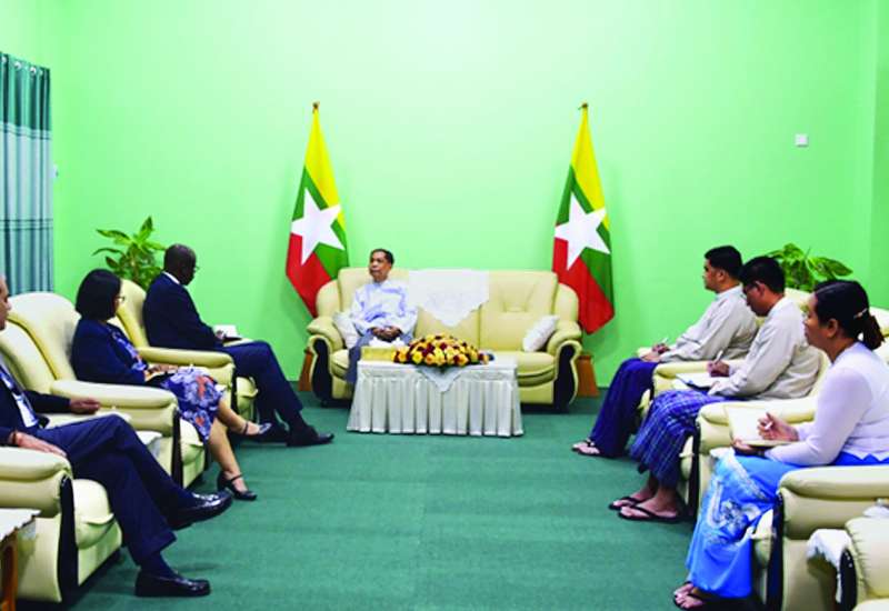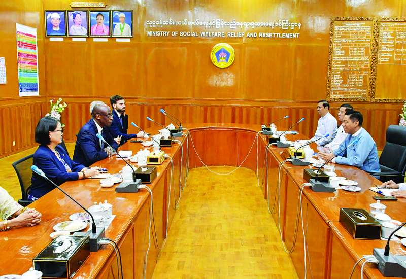 လူမှုဝန်ထမ်း၊ ကယ်ဆယ်ရေးနှင့်ပြန်လည်နေရာချထားရေးဝန်ကြီးဌာန ပြည်ထောင်စုဝန်ကြီး ဒေါက်တာစိုးဝင်းသည် ကုလသမဂ္ဂဒုက္ခသည်များဆိုင်ရာ မဟာမင်းကြီးရုံး (UNHCR) ၏ တတိယ ရာထူးအကြီးဆုံးနှင့် ကုလသမဂ္ဂလက်ထောက်အတွင်းရေးမှူးချုပ်ဖြစ်သူ လုပ်ငန်းလည်ပတ်မှုဆိုင်ရာ လက်ထောက် မဟာမင်းကြီး Mr. Raouf Mazou ဦးဆောင်သောအဖွဲ့ကို ယနေ့ နံနက် ၉ နာရီတွင် အဆိုပါဝန်ကြီးဌာန အစည်းအဝေးခန်းမ၌ တွေ့ဆုံသည်။