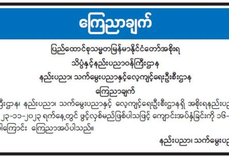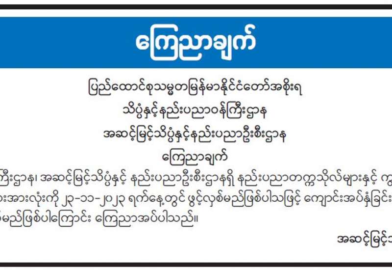 (၃၅) နှစ်မြောက် အထွေထွေအုပ်ချုပ်ရေးဦးစီးဌာန နှစ်ပတ်လည်နေ့ အထိမ်းအမှတ်အခမ်းအနားကို ယနေ့မွန်းလွဲပိုင်းတွင် နေပြည်တော်ကောင်စီရုံး ဇမ္ဗူသီရိခန်းမ၌ ကျင်းပသည်။