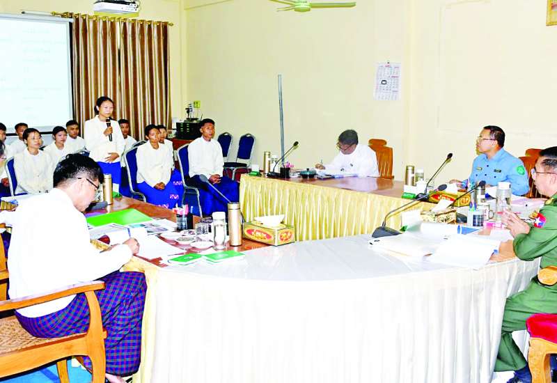 ပြည်ထောင်စုရွေးကောက်ပွဲကော်မရှင်က မဲဆန္ဒရှင်ပြည်သူများနှင့်တွေ့ဆုံ၍ မြန်မာအီလက်ထရောနစ်မဲပေးစက် (MEVM) နှင့် စပ်လျဉ်းပြီး ရှင်းလင်းပြသခြင်းနှင့် လက်တွေ့သရုပ်ပြစမ်းသပ်မဲပေးခြင်းများကို ယနေ့တွင် ပျဉ်းမနားမြို့နယ်၌ ပထမနေ့အဖြစ် မြို့နယ်အထွေထွေအုပ်ချုပ်ရေးဦးစီးဌာန စုပေါင်းရုံးအစည်းအဝေးခန်းမ၌ ဆောင်ရွက်သည်။