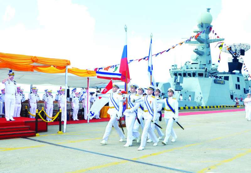ပထမအကြိမ် မြန်မာ-ရုရှား ရေကြောင်းလုံခြုံရေးဆိုင်ရာ လေ့ကျင့်ခန်း၏ ဖွင့်ပွဲအခမ်းအနားကို နိုဝင်ဘာ ၅ ရက် နေ့လယ်ပိုင်းတွင် ရန်ကုန်မြို့၊ သီလဝါဆိပ်ကမ်း၌ ကျင်းပပြုလုပ်ခဲ့ရာ ကာကွယ်ရေးဦးစီးချုပ်(ရေ) ဗိုလ်ချုပ်ကြီး မိုးအောင်၊ ရုရှားရေတပ် ဦးစီးချုပ် Admiral Nikolai A.EVMENOV နှင့် နှစ်နိုင်ငံရေတပ်အရာရှိကြီးများ၊ မြန်မာနိုင်ငံဆိုင်ရာ ရုရှားစစ်သံမှူးနှင့် ဖိတ်ကြားထားသူများ တက်ရောက်ခဲ့ကြသည်။