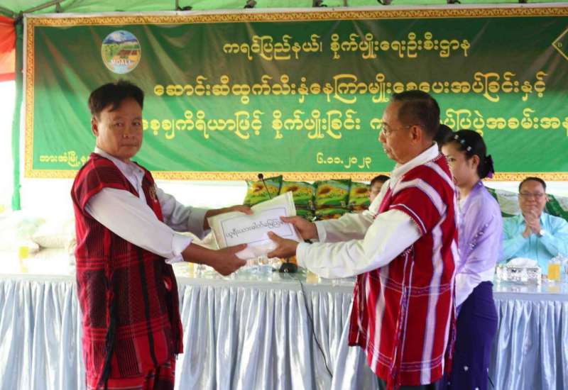 ကရင်ပြည်နယ်သို့ ရောက်ရှိနေသော နိုင်ငံတော်စီမံအုပ်ချုပ်ရေးကောင်စီအဖွဲ့ဝင် မန်းငြိမ်းမောင်၊ ခွန်စံလွင်နှင့် တိုင်းရင်းသားလူမျိုးများရေးရာဝန်ကြီးဌာန ပြည်ထောင်စုဝန်ကြီး Jeng Phang နော်တောင်၊ ကရင်ပြည်နယ်ဝန်ကြီးချုပ် ဦးစောမြင့်ဦး၊ ကရင်ပြည်နယ် အစိုးရအဖွဲ့ဝင် ဝန်ကြီးများ၊ ဌာနဆိုင်ရာ တာဝန်ရှိသူများသည် ယနေ့နံနက် ၉ နာရီတွင် ဘားအံမြို့နယ်၊ ထောင်ဝိကွင်း၌ကျင်းပသော ဆောင်းဆီထွက်သီးနှံနေကြာမျိုးစေ့၊ မြေဩဇာများပေးအပ်ခြင်းနှင့် မျိုးစေ့ချကိရိယာဖြင့် စိုက်ပျိုးခြင်း ကွင်းသရုပ်ပြ အခမ်း အနားသို့တက်ရောက်ခဲ့ကြသည်။
