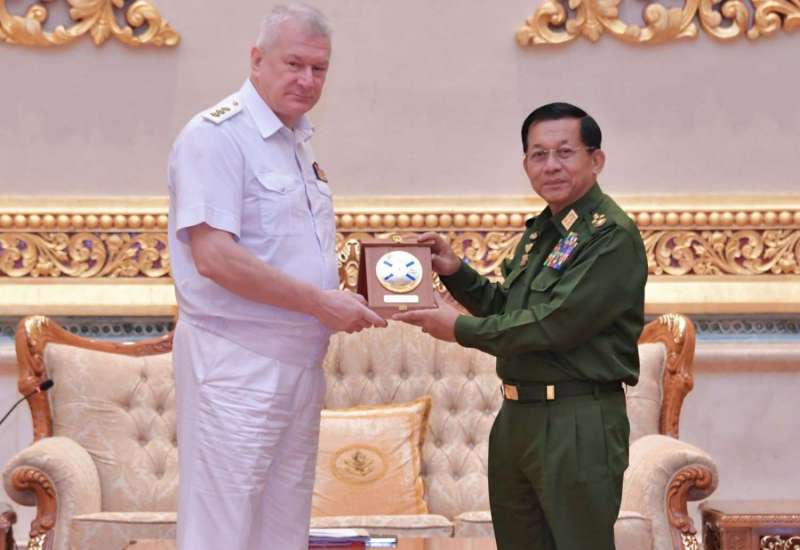 နိုင်ငံတော်စီမံအုပ်ချုပ်ရေးကောင်စီ ဥက္ကဋ္ဌ တပ်မတော်ကာကွယ်ရေးဦးစီးချုပ် ဗိုလ်ချုပ်မှူးကြီး မင်းအောင်လှိုင် သည် ရုရှားဖက်ဒရေးရှင်းနိုင်ငံ ရေတပ်ဦးစီးချုပ် Admiral Nikolai A.EVMENOV ဦးဆောင်သောကိုယ်စားလှယ်အဖွဲ့အား ယနေ့နံနက်ပိုင်းတွင် နေပြည်တော်ရှိ ဇေယျာသီရိဗိမာန် ဧည့်ခန်းမဆောင်၌ လက်ခံတွေ့ဆုံသည်။