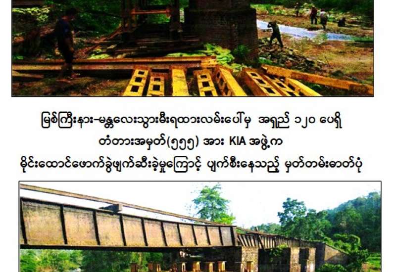 KIA အဖွဲ့အနေဖြင့် နိုင်ငံတော်အစိုးရနှင့် တပ်မတော်၏ ထာဝရငြိမ်းချမ်းရေးအတွက် ကြိုးပမ်းဆောင်ရွက်နေမှုအပေါ် လိုက်ပါဆောင်ရွက်ခြင်းမရှိသည့်အပြင် နယ်စပ်ဒေသကုန်သွယ်ရေး ပျက်စီးစေရန်နှင့် လမ်းပန်းဆက်သွယ်မှု ပြတ်တောက်စေရေးစသည့် နိုင်ငံတော်၏ အုပ်ချုပ်မှုယန္တရားကို ထိခိုက်ပျက်စီးစေလိုသော ရည်ရွယ်ချက်များဖြင့် ကချင်ပြည်နယ်အတွင်း စစ်ရေးနှင့်မသက်ဆိုင်သော လမ်း၊ တံတားများအား ဖောက်ခွဲဖျက်ဆီးမှုများ ပြုလုပ်လာခဲ့သည်။