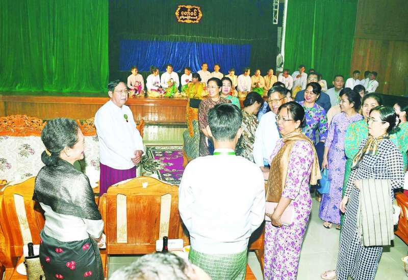 နိုင်ငံတော်စီမံအုပ်ချုပ်ရေးကောင်စီဥက္ကဋ္ဌ နိုင်ငံတော်ဝန်ကြီးချုပ်၏ဇနီး ဒေါ်ကြူကြူလှသည် ယနေ့ညနေပိုင်းတွင် သာသနာရေးနှင့်ယဉ်ကျေးမှုဝန်ကြီးဌာနရှိ ယဉ်ကျေးမှုရတနာခန်းမ၌ ကျင်းပသည့် ရုပ်စုံသဘင်အဖွဲ့လိုက် ပြိုင်ပွဲသို့ တက်ရောက် ကြည့်ရှုအားပေးသည်။