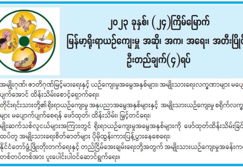 ၂၀၂၃ ခုနှစ်၊ (၂၄) ကြိမ်မြောက် မြန်မာ့ရိုးရာယဉ်ကျေးမှု အဆို၊ အက၊ အရေး၊ အတီး ပြိုင်ပွဲ ဦးတည်ချက် (၄)ရပ်