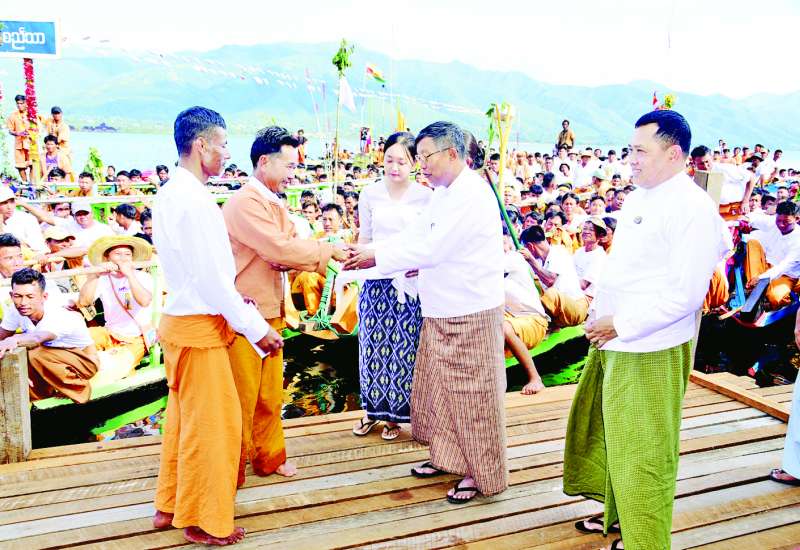 သာသနာရေးနှင့်ယဉ်ကျေးမှုဝန်ကြီးဌာန ပြည်ထောင်စုဝန်ကြီး ဦးတင်ဦးလွင်၊ ရှမ်းပြည်နယ် ဝန်ကြီးချုပ် ဦးအောင်ဇော်အေး၊ ပြည်နယ်ဝန်ကြီးများ၊ ပြည်နယ်ဥပဒေချုပ်နှင့်တာဝန်ရှိသူများ၊ ပြည်နယ်၊ ခရိုင်၊ မြို့နယ်အဆင့် ဌာနဆိုင်ရာများနှင့်အတူ ယနေ့မွန်းလွဲပိုင်းတွင် ညောင်ရွှေမြို့နယ် အင်းလေးရေလယ် ဗိုလ်တဲတွင် အင်းလေးရိုးရာ လှေပြိုင်ပွဲ အုပ်စုအဆင့်ပြိုင်ပွဲ စည်ကားသိုက်မြိုက် စွာ ယှဉ်ပြိုင်နေမှုကို ကြည့်ရှု အားပေးကြကြောင်း သိရသည်။
