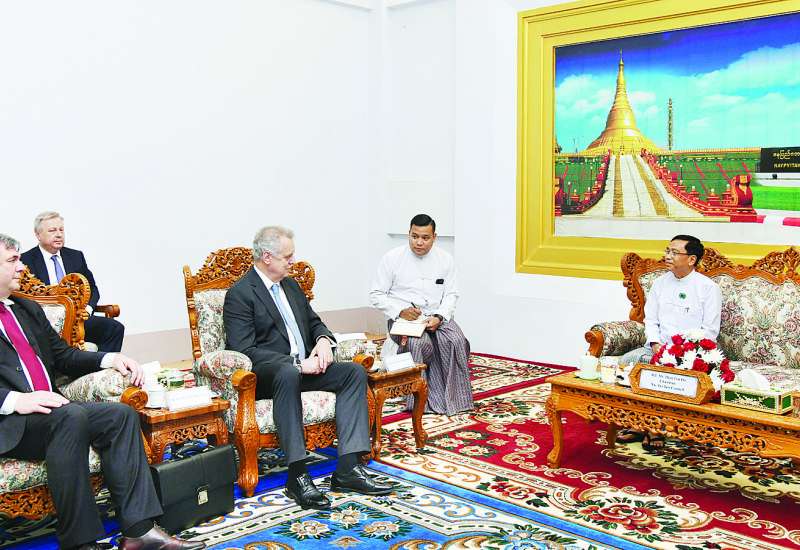 နေပြည်တော်ကောင်စီဥက္ကဋ္ဌ မြို့တော်ဝန်ဦးသန်းထွန်းဦးသည် ရုရှားဖက်ဒရေးရှင်းနိုင်ငံ စိန့်ပီတာစဘတ် အစိုးရအဖွဲ့ဝင် ပြည်ပဆက်ဆံရေးကော်မတီဥက္ကဋ္ဌ Mr.Grigoriev Evgeny Dmitrie- vich ဦးဆောင်သော ကိုယ်စားလှယ်အဖွဲ့အား ယနေ့နံနက်ပိုင်းတွင် နေပြည်တော်ကောင်စီရုံး ဧည့်ခန်းမ၌ လက်ခံတွေ့ဆုံသည်။