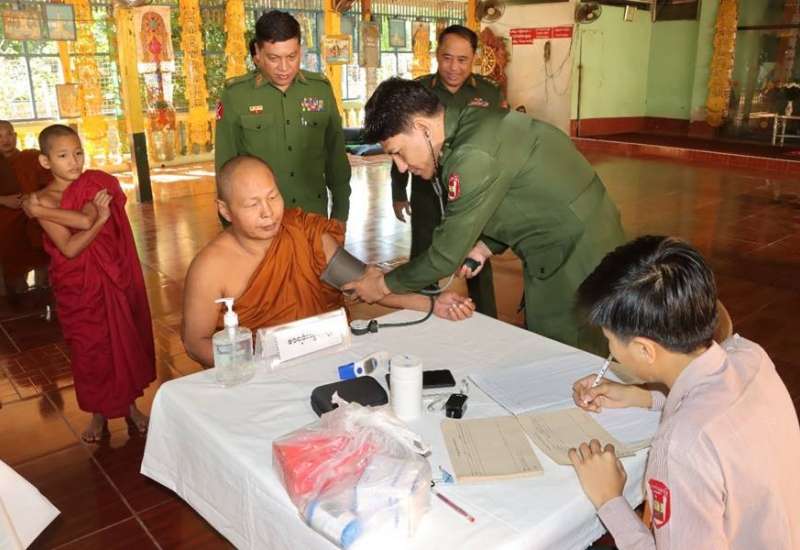 တိုင်းဒေသကြီးနှင့် ပြည်နယ်များအတွင်းရှိ မြို့နယ်များမှ သံဃာတော်များ၊ သာသနာနွယ်ဝင် သီလရှင်များ၊ ဒေသခံပြည်သူများအား သက်ဆိုင်ရာ တိုင်းစစ်ဌာနချုပ်အသီးသီမှ နယ်မြေခံဆေးကုသရေးအဖွဲ့များက လိုအပ်သည့် ကျန်းမာရေးစောင့်ရှောက်မှုလုပ်ငန်းများ ဆောင်ရွက်ပေးလျက်ရှိရာ ယနေ့တွင် မြောက်ပိုင်းတိုင်းစစ်ဌာနချုပ်၊ နယ်မြေခံဆေးကုသရေးအဖွဲ့က ကချင်ပြည်နယ်၊ မြစ်ကြီးနားမြို့ပေါ်ကျောင်းတိုက်များမှ သံဃာတော် ၅၃ ပါးတို့ကိုလည်းကောင်း၊ အရှေ့မြောက်တိုင်းစစ်ဌာနချုပ်၊ နယ်မြေခံဆေးကုသရေးအဖွဲ့က ရှမ်းပြည်နယ်(မြောက်ပိုင်း)၊ လားရှိုးမြို့၊ အမှတ်(၁၀)ရပ်ကွက်ရှိ တောရကျောင်းပရိယတ္တိစာသင်တိုက်မှ သံဃာတော် ၈၉ ပါးတို့ကိုလည်းကောင်း၊ တောင်ပိုင်းတိုင်းစစ်ဌာနချုပ်၊ နယ်မြေခံဆေးကုသရေးအဖွဲ့က ပဲခူးတိုင်းဒေသကြီး၊ ပြည်မြို့၊ နဝင်းရပ်ကွက်ရှိ ဝင်္ကဘာတောရဘုန်းတော်ကြီးကျောင်းတိုက်မှ သံဃာတော် ၄၇ ပါးတို့ကိုလည်းကောင်း သတ်မှတ်နေရာအသီးသီး၌ လိုအပ်သည့် ကျန်းမာရေးစစ်ဆေးကုသပေးခြင်းများ ဆောင်ရွက်ပေးသည်။