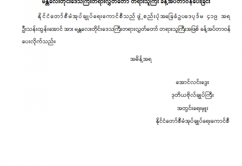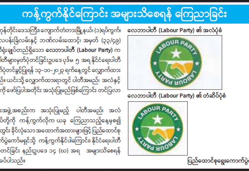 ကန့်ကွက်နိုင်ကြောင်း အများသိစေရန် ကြေညာခြင်း