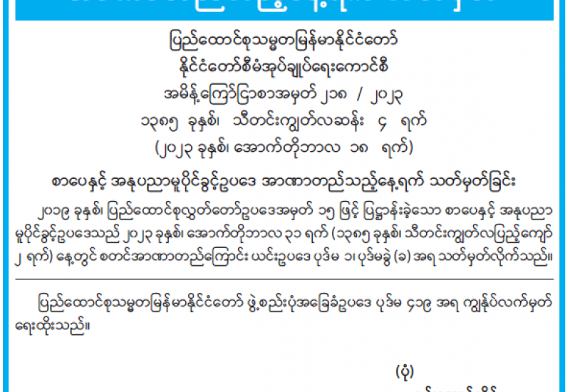 စာပေနှင့် အနုပညာမူပိုင်ခွင့်ဥပဒေ အာဏာတည်သည့်နေ့ရက် သတ်မှတ်
