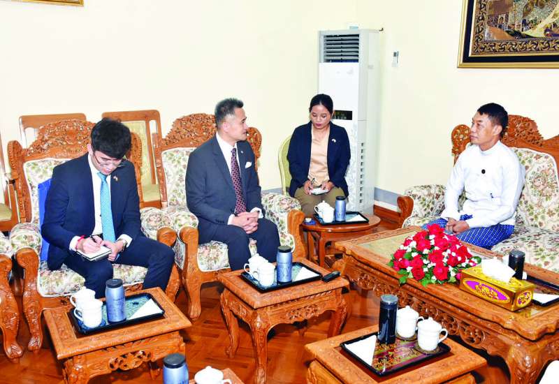 စီးပွားရေးနှင့် ကူးသန်းရောင်းဝယ်ရေးဝန်ကြီးဌာန ပြည်ထောင်စုဝန်ကြီး ဦးထွန်းအုံသည် မြန်မာနိုင်ငံဆိုင်ရာ ထိုင်းနိုင်ငံသံအမတ်ကြီး H.E.Mr. Mongkol Visitst-ump ဦးဆောင်သော ကိုယ်စားလှယ်အဖွဲ့အား ယနေ့ မွန်းလွဲ ၂ နာရီတွင် စီးပွားရေးနှင့်ကူးသန်းရောင်းဝယ်ရေးဝန်ကြီးဌာန ပြည်ထောင်စုဝန်ကြီး၏ ဧည့်ခန်းမ၌ လက်ခံတွေ့ဆုံသည်။