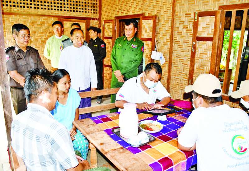 စစ်ကိုင်းတိုင်းဒေသကြီး ဝန်ကြီးချုပ်ဦးမြတ်ကျော်သည် တိုင်းဒေသကြီးအစိုးရ အဖွဲ့ဝင်များ၊ တိုင်းဒေသကြီးအဆင့် ဌာနဆိုင်ရာများ၊ မုံရွာခရိုင်/မြို့နယ်စီမံ အုပ်ချုပ်ရေးအဖွဲ့ဥက္ကဋ္ဌများနှင့် အဖွဲ့ဝင်များ၊ တာဝန်ရှိသူများနှင့်အတူ ယနေ့နံနက်ပိုင်းတွင် မုံရွာမြို့နယ် ကျွဲရဲ(မြောက်) ကျေးရွာအတွင်းရှိ ကောက်ကွက်သုံးကွက်အား အဖွဲ့ငါးဖွဲ့ခွဲကာ စမ်းသပ်သန်းခေါင်စာရင်းကောက် ယူနေမှုများကို လိုက်လံကြည့်ရှုစစ်ဆေး၍ လိုအပ်သည်များ တာဝန်ရှိသူများနှင့် ဖြည့်ဆည်း ပေါင်းစပ်ဆောင်ရွက်ပေးခဲ့သည်။