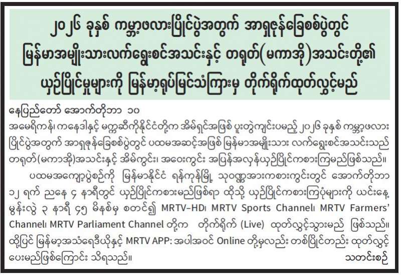 အဂတိလိုက်စားမှုတိုက်ဖျက်ရေးကော်မရှင်၊ ပညာရေးဝန်ကြီးဌာနနှင့် ပြန်ကြားရေးဝန်ကြီးဌာနတို့ပူးပေါင်းဆောင်ရွက်သည့် အဂတိလိုက်စားမှု တိုက်ဖျက်ရေးနှင့် လူငယ်တို့၏အခန်းကဏ္ဍစကားဝိုင်းကို ယနေ့နံနက် ၁၀ နာရီတွင် ဇေယျာသီရိမြို့နယ်ရှိ အမှတ် (၂) အခြေခံပညာအထက်တန်းကျောင်း အစည်းအဝေးခန်းမ၌ ကျင်းပသည်။
