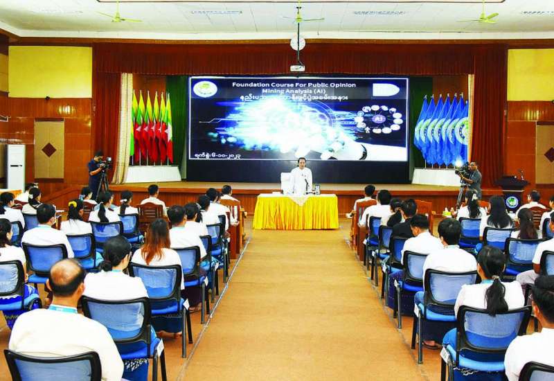 ပြန်ကြားရေးဝန်ကြီးဌာန မီဒီယာဖွံ့ဖြိုးတိုးတက်ရေးဦးစီးဌာနမှ အရာထမ်း၊ အမှုထမ်း များ လူ့စွမ်းအားအရင်းအမြစ်ဖွံ့ဖြိုးတိုးတက်စေရန်၊ သတင်းတု၊ သတင်းမှားများ စောင့်ကြည့်လေ့လာခြင်းနှင့် သတင်းစီးဆင်းမှုများအပေါ် Data Analysis ပြုလုပ်၍ ရလဒ်များ ခွဲခြမ်းစိတ်ဖြာ ဆောင်ရွက်နိုင်စေရန် ရည်ရွယ်၍ Foundation Course For Public Opinion Mining Analysis (Artificial Intelligence - AI)နည်းပညာ သင်တန်းဖွင့်ပွဲ အခမ်းအနားကို ယနေ့နံနက်ပိုင်းတွင် နေပြည်တော်ရှိ ပြန်ကြားရေး ဝန်ကြီးဌာန စုဝေးခန်းမ၌ ကျင်းပသည်။