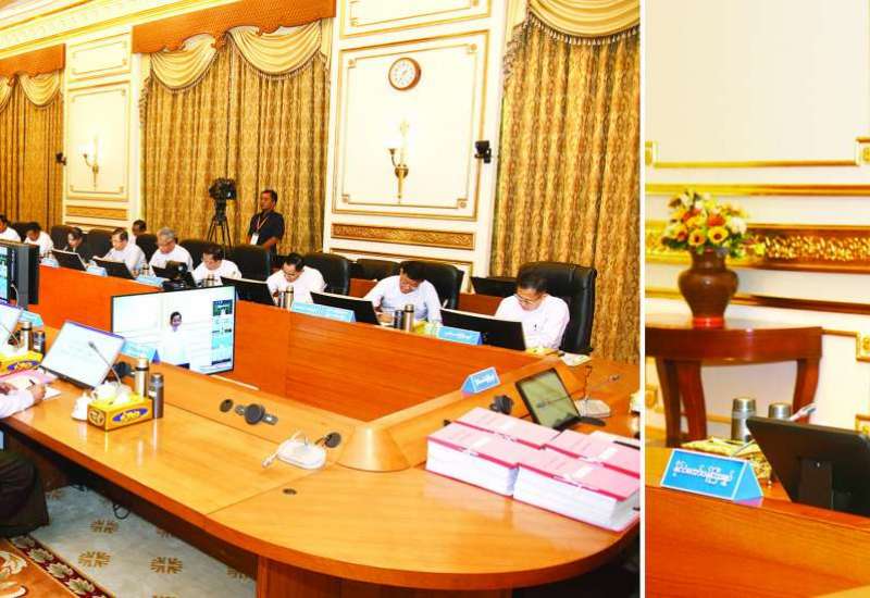 ပြည်ထောင်စုအစိုးရအဖွဲ့အစည်းအဝေး အမှတ်စဉ် (၅/၂၀၂၃)ကို ယနေ့ မွန်းလွဲပိုင်းတွင် နေပြည်တော်ရှိ နိုင်ငံတော်စီမံအုပ်ချုပ်ရေးကောင်စီဥက္ကဋ္ဌရုံး အစည်းအဝေးခန်းမ၌ကျင်းပရာ နိုင်ငံတော်စီမံအုပ်ချုပ်ရေးကောင်စီဥက္ကဋ္ဌ နိုင်ငံတော်ဝန်ကြီးချုပ် ဗိုလ်ချုပ်မှူးကြီး မင်းအောင်လှိုင် တက်ရောက်အမှာစကားပြောကြားသည်။
