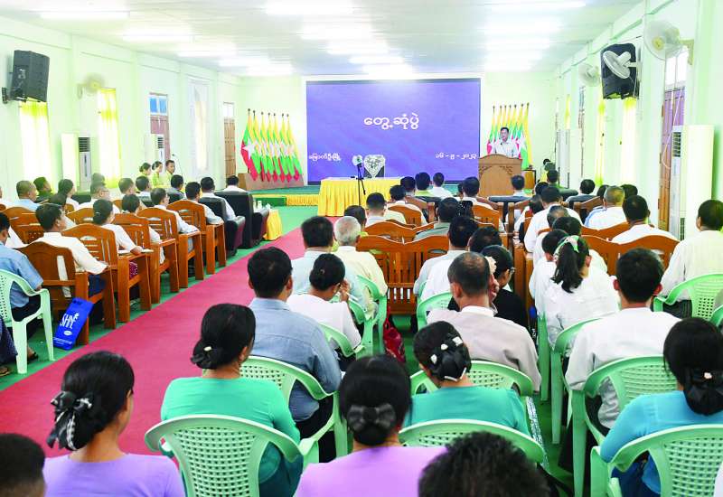 နိုင်ငံတော်စီမံအုပ်ချုပ်ရေးကောင်စီအဖွဲ့ဝင် ဒေါက်တာမှုထန်သည် ချင်းပြည်နယ်ဝန်ကြီးချုပ် ဒေါက်တာ ဝုန်ဆွန်းထန်၊ ပြည်နယ်လုံခြုံရေးနှင့် နယ်စပ်ရေးရာဝန်ကြီး ဗိုလ်မှူးကြီး သိန်းထွန်းအောင်၊ ဝန်ကြီးဌာနများမှ ဌာနဆိုင်ရာတာဝန်ရှိသူများနှင့်အတူ ယနေ့နံနက်ပိုင်းတွင် ဖလမ်းမြို့ နယ်မြေခံတပ်ရင်းအစည်းအဝေးခန်းမ၌ ခရိုင်၊ မြို့နယ်အဆင့်ဌာနဆိုင်ရာဝန်ထမ်းများ၊ မြို့မိမြို့ဖများနှင့် တွေ့ဆုံသည်။