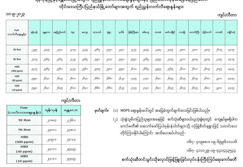 ရန်ကုန်မြို့နှင့် မန္တလေးမြို့အတွက် ရည်ညွှန်းလက်ကားဈေးနှုန်းများနှင့် ပြည်ထောင်စုနယ်မြေ နေပြည်တော်၊ တိုင်းဒေသကြီး/ပြည်နယ် မြို့တော်များအတွက် ရည်ညွှန်းလက်လီဈေးနှုန်းများ