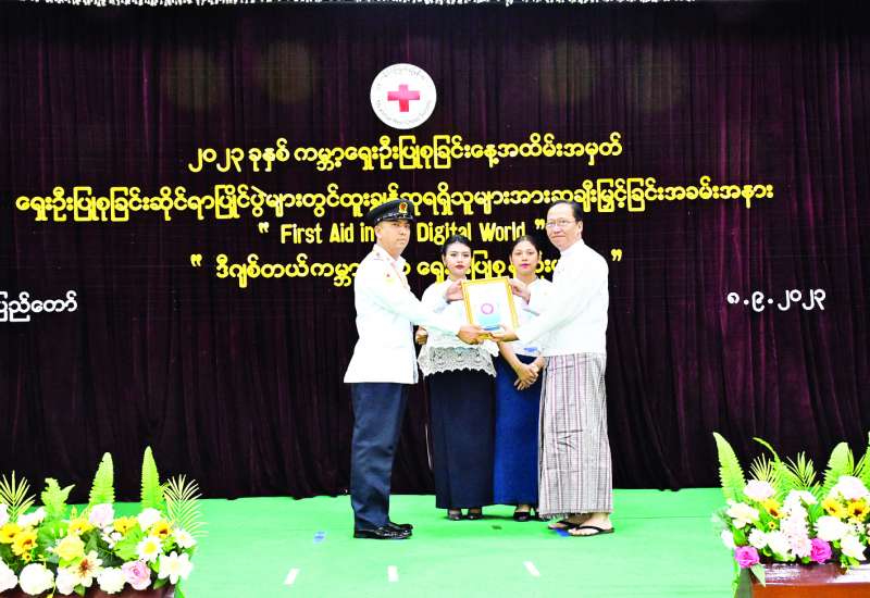 ၂၀၂၃ ခုနှစ် ကမ္ဘာ့ရှေးဦးပြုစုခြင်းနေ့ အထိမ်းအမှတ် ရှေးဦးပြုစုခြင်း ဆိုင်ရာပြိုင်ပွဲများတွင် ထူးချွန်ဆု ရရှိသူများအား ဆုချီးမြှင့်ခြင်း အခမ်းအနားကို ယနေ့ နံနက်ပိုင်းတွင် နေပြည်တော်ရှိ မြန်မာနိုင်ငံကြက်ခြေနီအသင်းဌာနချုပ်၌ ကျင်းပသည်။