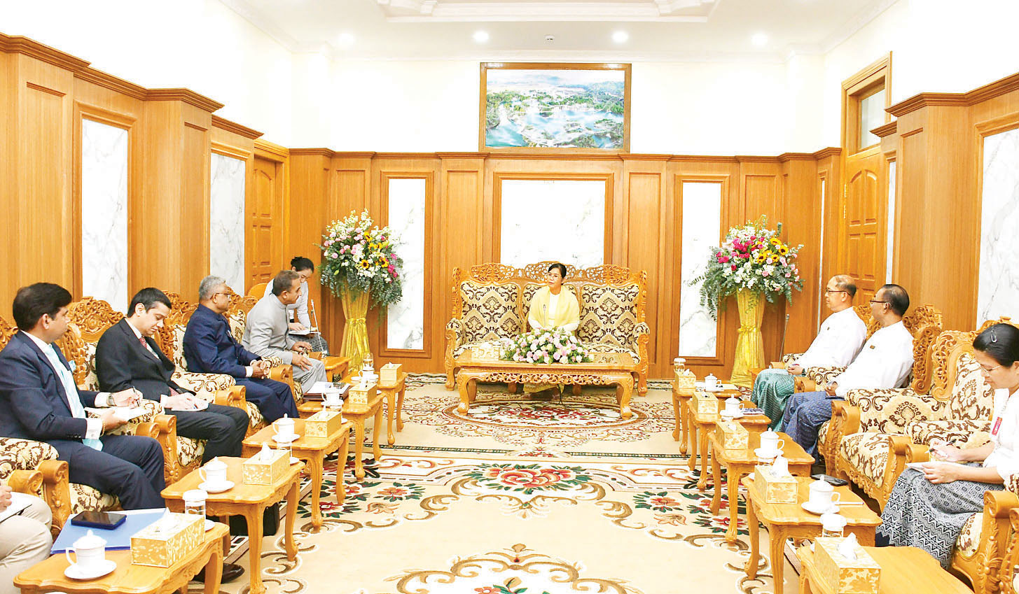 ပြည်ထောင်စုသမ္မတမြန်မာနိုင်ငံ ဒုတိယသမ္မတ ဒေါ်နန်းနီနီအေးသည် အိန္ဒိယနိုင်ငံ ပြည်ပရေးရာ ဝန်ကြီးဌာန ဒုတိယဝန်ကြီး H.E. Mr. Kirti Vardhan Singh ကို ယနေ့မွန်းလွဲပိုင်းတွင် နေပြည်တော်ရှိ နိုင်ငံတော်သမ္မတရုံး ဧည့်ခန်းမ၌ လက်ခံတွေ့ဆုံသည်။