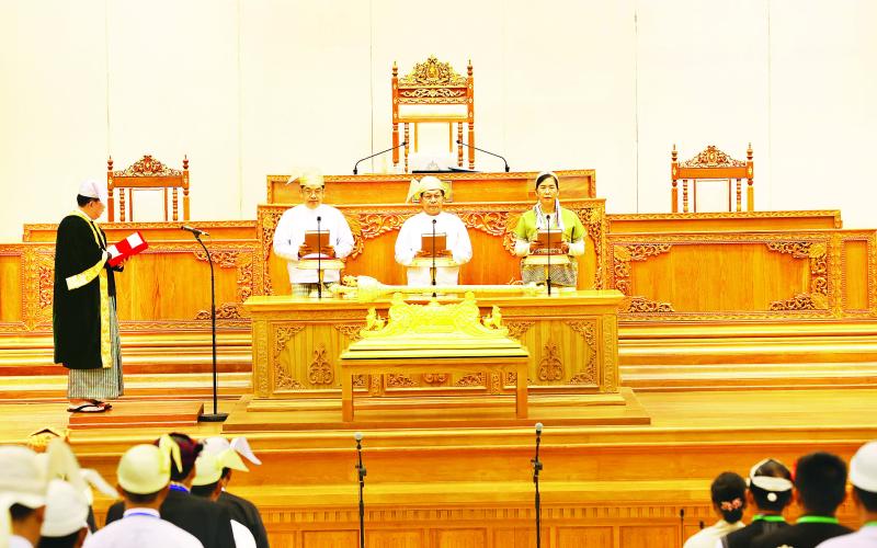 • ပြည်ထောင်စုလွှတ်တော် ကတိသစ္စာပြုပွဲအခမ်းအနားတွင် နိုင်ငံတော်သမ္မတ ဦးမင်းအောင်လှိုင် ပြောကြားသည့် မိန့်ခွန်း