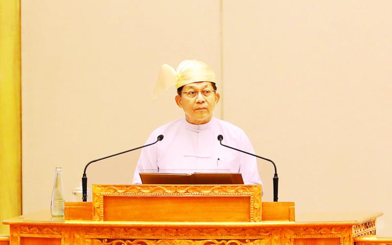 ပြည်ထောင်စုလွှတ်တော် ကတိသစ္စာပြုပွဲအခမ်းအနားတွင် နိုင်ငံတော်သမ္မတ ဦးမင်းအောင်လှိုင် ပြောကြားသည့် မိန့်ခွန်း