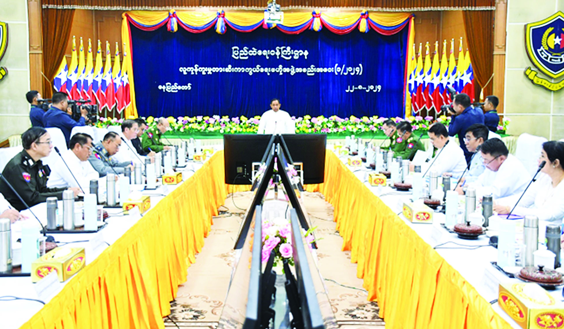 လူကုန်ကူးမှု တားဆီးကာကွယ် ရေး ဗဟိုအဖွဲ့အစည်းအဝေး (၁/၂၀၂၄)ကို ယနေ့မွန်းလွဲ ၂ နာရီ က မြန်မာနိုင်ငံရဲတပ်ဖွဲ့ဌာနချုပ် အရိန္ဒမာခန်းမ၌ ကျင်းပရာ နိုင်ငံတော် စီမံအုပ်ချုပ်ရေး ကောင်စီအဖွဲ့ဝင်၊ ပြည်ထဲရေး ဝန်ကြီးဌာန ပြည်ထောင်စုဝန်ကြီး၊ လူကုန်ကူးမှု တားဆီးကာကွယ် ရေးဗဟိုအဖွဲ့ဥက္ကဋ္ဌ ဒုတိယ ဗိုလ်ချုပ်ကြီး ရာပြည့် ဦးဆောင် သော ဗဟိုအဖွဲ့ အဖွဲ့ဝင်များ၊ ဌာန ဆိုင်ရာ ကိုယ်စားလှယ်များ တက်ရောက်ကြပြီး ကျန်အဖွဲ့ဝင် များက Online မှတစ်ဆင့် တက်ရောက်ကြသည်။