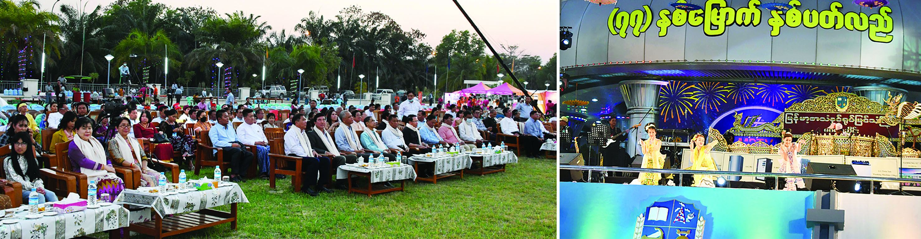 ထို့နောက်   နိုင်ငံတော်စီမံ အုပ်ချုပ်ရေးကောင်စီဝင် ဦးမောင် ကို၊  ပြည်ထောင်စုဝန်ကြီးများ၊ ဒုတိယဝန်ကြီးနှင့်   ဌာနဆိုင်ရာ တာဝန်ရှိသူများက   မြန်မာ့အသံ ခေတ်ပေါ်တေးဂီတအဖွဲ့နှင့် မြန်မာ့ ဆိုင်းဝိုင်းကြီးတို့  တွဲဖက်၍   အနု ပညာရှင်များ၊ တေးသံရှင်များနှင့် မြန်မာ့အသံနှင့် ရုပ်မြင်သံကြားမှ ဝန်ထမ်းများ၏  တေးသီချင်းများ ဖြင့် သီဆိုကပြဖျော်ဖြေ တင်ဆက် မှုများကို     ကြည့်ရှုအားပေးကြ သည်။