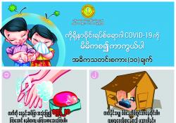 (၁) အိမ်အပြင်ထွက်လျှင် ပါးစပ်နှင့် နှာခေါင်းစည်း (mask) ကို စနစ်တကျ တပ်ဆင်ထားပါ။
