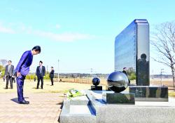 ဂျပန်ဝန်ကြီးချုပ် ရှင်ဇိုအာဘေးသည် ၂၀၁၁ ခုနှစ် မတ် ၁၁ ရက်က ငလျင်နှင့် ဆူနာမီဒဏ်ခံစားခဲ့ရသော ဂျပန်အရှေ့ မြောက်ပိုင်း ဖူကူရှီးမားဒေသရှိ …