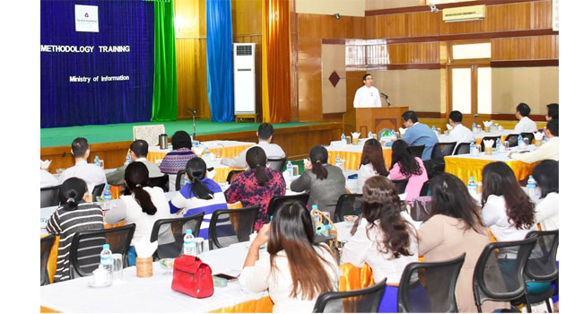 ပြည်သူ့ရေးရာမူဝါဒ (Public Policy) နှင့် အခြေခံလူမှုရေးသုတေသနနည်း စနစ် (Basic Social Research Methodology) သင်တန်းဖွင့်ပွဲ အခမ်းအနားကို ယနေ့နံနက် ၉ နာရီခွဲ က နေပြည်တော်ရှိ ပြန်ကြားရေး ဝန်ကြီးဌာန စုပေါင်းခန်းမ၌ ကျင်းပ သည်။
