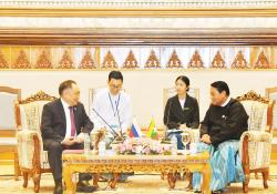 ပြည်သူ့လွှတ်တော်ဥက္ကဋ္ဌ ဦးခင်ရီသည် ရုရှားဖက်ဒရေးရှင်းနိုင်ငံ ဒူးမားလွှတ်တော် ဒုတိယဥက္ကဋ္ဌ H.E. Mr. Sholban…