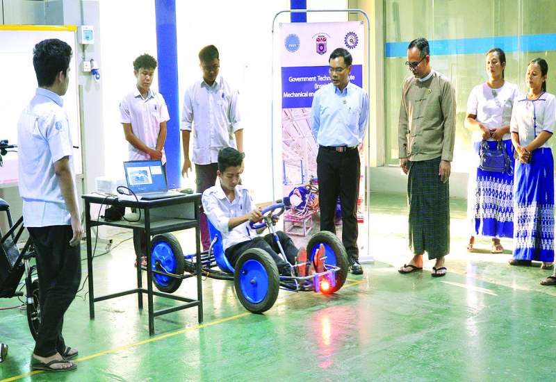 သိပ္ပံနှင့်နည်းပညာဝန်ကြီးဌာန ဒုတိယဝန်ကြီး ဒေါက်တာ အောင်ဇေယျသည် နိုဝင်ဘာ ၂၂ ရက်က ရန်ကုန်မြို့ ဗဟန်းမြို့နယ်ရှိ စက်မှုနည်းပညာလေ့ကျင့် သင်ကြားရေးသင်တန်းကျောင်း၌ မြန်မာနိုင်ငံဆန်စပါးအသင်းချုပ်နှင့် ပူးပေါင်းဖွင့်လှစ်သည့် ဆန်စပါးကြိတ်ခွဲထုတ်လုပ်မှု နည်းပညာသင်တန်းများဆိုင်ရာ လက်တွေ့သုံးစက်ပစ္စည်းပြင်ဆင်ထားရှိမှုများ၊ Woodworking နည်းပညာဌာနရှိ အိမ်တွင်းအလှဆင်နှင့် ပရိဘောဂပစ္စည်းများ လက်တွေ့ထုတ်လုပ်ထားရှိမှုများကို ကြည့်ရှုစစ်ဆေးသည်။