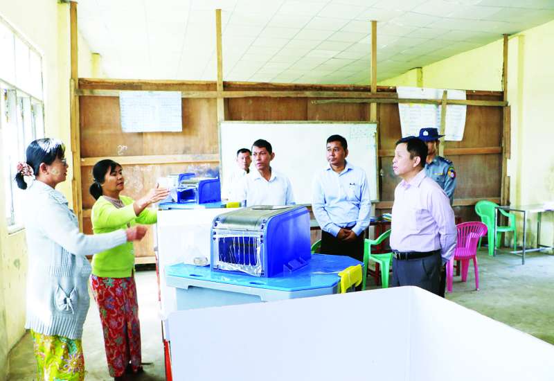 မြေပြင်ကွင်းဆင်းစာရင်းကောက်ယူရေးကြီးကြပ်‌မှုဗဟိုကော်မတီဥက္ကဋ္ဌ၊ လူဝင်မှုကြီးကြပ်ရေးနှင့် ပြည်သူ့အင်အားဝန်ကြီးဌာန ပြည်ထောင်စုဝန်ကြီးဦးမြင့်ကြိုင်သည် တာဝန်ရှိသူများနှင့်အတူ ယမန်နေ့ မွန်းလွဲပိုင်းက ဧရာဝတီတိုင်းဒေသကြီး ဝါးခယ်မမြို့နယ် ကျုံမငေးမြို့ နဒီအောင်မြေရပ်ကွက်ရှိ မဲရုံအမှတ် (၁) သို့ သွားရောက်၍ ဇန်နဝါရီ ၁၁ ရက်တွင် ပါတီစုံဒီမိုကရေစီအထွေထွေရွေးကောက်ပွဲ အပိုင်း (၂) ကျင်းပနိုင်ရေး မဲရုံလုပ်ငန်းစဉ်များ ဆောင်ရွက်ထားရှိမှုအခြေအနေကို ကြည့်ရှုစစ်ဆေးသည်။