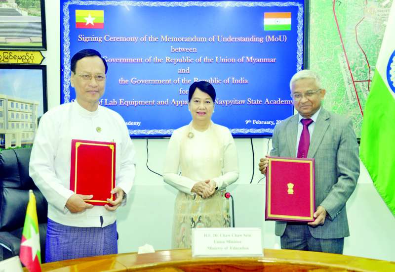 ပြည်ထောင်စုသမ္မတ မြန်မာနိုင်ငံတော်အစိုးရနှင့် အိန္ဒိယသမ္မတနိုင်ငံ အစိုးရတို့အကြား Naypyitaw State Academy တွင် ဓာတ်ခွဲခန်းသုံးပစ္စည်းကိရိယာများ ထောက်ပံ့နိုင်ရေးနားလည်မှုစာချွန်လွှာ (MoU) လက်မှတ်ရေးထိုးခြင်း အခမ်းအနားကို ယနေ့နံနက် ၉ နာရီတွင် Naypyitaw State Academy အစည်းအဝေးခန်းမ၌ ကျင်းပသည်။