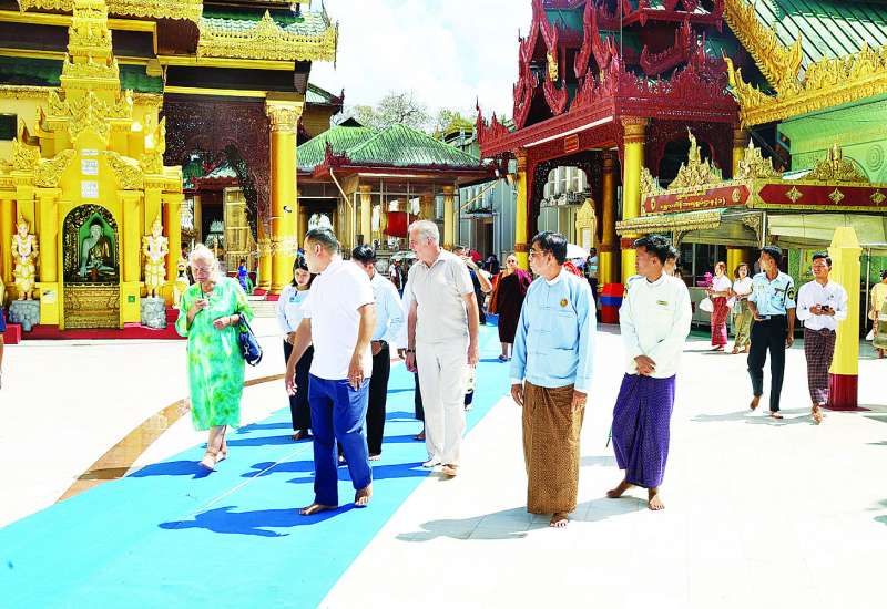 ရုရှားဖက်ဒရေးရှင်းနိုင်ငံ စိန့်ပီတာစဘတ်မြို့အစိုးရအဖွဲ့ဝင် ပြည်ပဆက်ဆံရေးကော်မတီဥက္ကဋ္ဌ Mr.Evgeny Grigoryev နှင့်ဇနီးတို့သည် ယနေ့နံနက်ပိုင်းတွင် ရွှေတိဂုံစေတီတော်မြတ်ကြီးအား သွားရောက်ကြည်ညိုလေ့လာကြသည်။