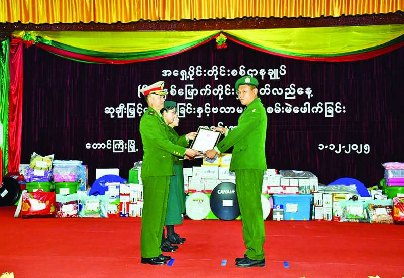 အရှေ့ပိုင်းတိုင်းစစ်ဌာနချုပ်၏ (၆၄)နှစ်မြောက် တိုင်းနှစ်ပတ်လည်နေ့ စစ်ရေးပြအခမ်းအနားကို ယနေ့တွင် တိုင်းစစ်ဌာနချုပ် စစ်ရေးပြကွင်း၌ပြုလုပ်ရာ ရှမ်းပြည်နယ်ဝန်ကြီးချုပ် ဦးအောင်အောင်၊ တိုင်းမှူး ဗိုလ်မှူးချုပ်ကျော်နိုင်ဦးနှင့် တာဝန်ရှိသူများ၊ အရာရှိ၊ စစ်သည်၊ မိသားစုဝင်များ၊ ဌာနဆိုင်ရာတာဝန်ရှိသူများ၊ ပြည်သူ့စစ်(ဌာနေ)တပ်ဖွဲ့ဝင်များ၊ စစ်မှု ထမ်းဟောင်းအဖွဲ့ဝင်များနှင့် ဖိတ်ကြားထားသူများ တက်ရောက်ကြသည်။