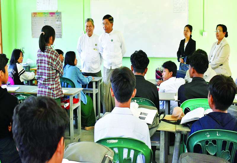 ပြန်ကြားရေးဝန်ကြီးဌာန ဒုတိယဝန်ကြီး ဦးရဲတင့်သည် ယနေ့နံနက်ပိုင်းက ချောက်မြို့နယ် ဂွေးချိုကျေးရွာ အခြေခံပညာနှင့် စက်မှုစိုက်ပျိုးမွေးမြူရေးအထက်တန်းကျောင်းသို့ ရောက်ရှိပြီး ကျောင်းသား ကျောင်းသူများ ပညာသင်ကြားနေမှုများကို လိုက်လံကြည့်ရှုအားပေးသည်။
