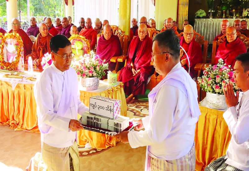 လယ်ဝေးမြို့ ဖောင်တော်ချက်မစေတီတော် ပြန်လည်ပြုပြင်ရန်အတွက် အလှူငွေပေးအပ်လှူဒါန်းပွဲနှင့် ပန္နက်တော်တင်မဟာမင်္ဂလာအခမ်းအနားကို ယနေ့နံနက်ပိုင်းတွင် ဖောင်တော်ချက်မစေတီတော် ပရိဝုဏ်နဂါးစောင်းတန်း၌ကျင်းပရာ လယ်ဝေးမြို့ ပေါက်မြိုင်ပရိယတ္တိစာသင်တိုက် ဦးစီးပဓာနနာယကဆရာတော် အဘိဓဇမဟာရဋ္ဌဂုရု ဘဒ္ဒန္တဇနိန္ဒအမှူးပြုသော ပင့်သံဃာတော်များ ကြွရောက်တော်မူကြပြီး သာသနာရေးနှင့်ယဉ်ကျေးမှုဝန်ကြီးဌာန ပြည်ထောင်စုဝန်ကြီး ဦးတင်ဦးလွင်၊ နေပြည်တော်ကောင်စီဥက္ကဋ္ဌ ဦးသန်းထွန်းဦး၊ ဒုတိယဝန်ကြီး ဒေါ်နုမြဇံ၊ နေပြည်တော်ကောင်စီဝင်များ၊ အမြဲတမ်းအတွင်းဝန်၊ ဌာနဆိုင်ရာများ၊ အလှူရှင်များနှင့် တာဝန်ရှိသူများ တက်ရောက်ကြသည်။