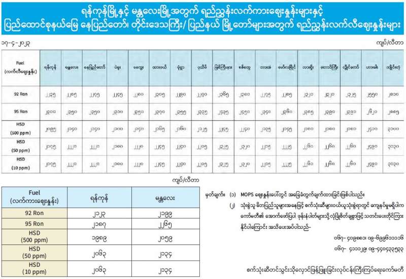 ရန်ကုန်မြို့နှင့် မန္တလေးမြို့အတွက် ရည်ညွှန်းလက်ကားဈေးနှုန်းများနှင့် ပြည်ထောင်စုနယ်မြေ နေပြည်တော်၊ တိုင်းဒေသကြီး/ ပြည်နယ် မြို့တော်များအတွက် ရည်ညွှန်းလက်လီဈေးနှုန်းများ