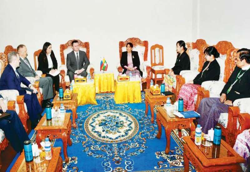 ရခိုင်ပြည်နယ် တည်ငြိမ်အေးချမ်းရေးနှင့် ဖွံ့ဖြိုးတိုးတက်ရေးဆိုင်ရာလုပ်ငန်းများ ညှိနှိုင်းပေါင်း စပ်ရေး ကော်မတီ ဒုတိယဥက္ကဋ္ဌ(၁)၊ အပြည်ပြည်ဆိုင်ရာပူးပေါင်း ဆောင်ရွက်ရေးဝန်ကြီးဌာန ပြည်ထောင်စုဝန်ကြီး ဦးကိုကိုလှိုင် ဦးဆောင်သည့် အာဆီယံနိုင်ငံများနှင့် အိမ်နီးချင်း နိုင်ငံများဖြစ်သော တရုတ်၊ အိန္ဒိယနှင့် ဘင်္ဂလားဒေ့ရှ်နိုင်ငံသံရုံးများမှသံရုံးအကြီးအကဲများ၊ သံတမန်များ၊ အာဆီယံလူသားချင်းစာနာထောက်ထားမှု အကူအညီပေးအပ်ရေးညှိနှိုင်းမှု ဗဟိုဌာန