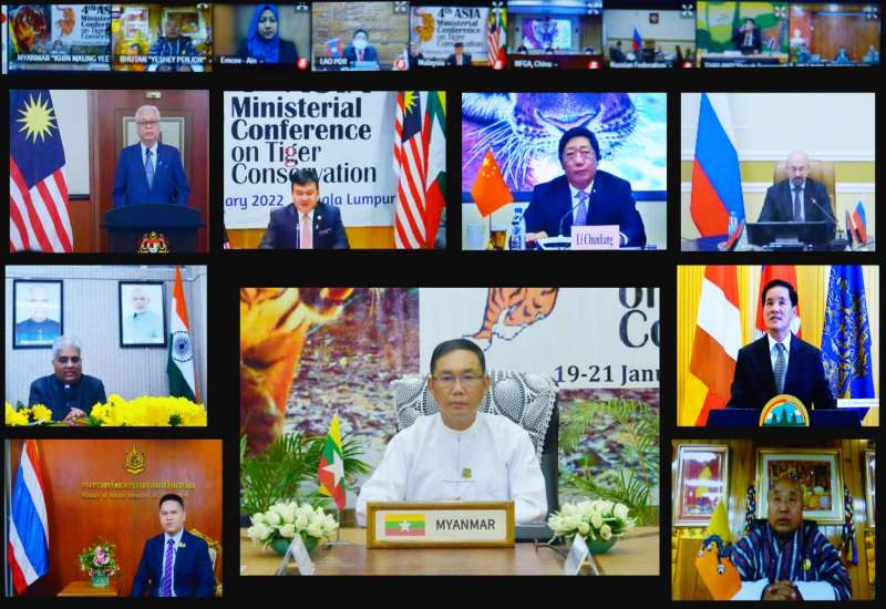 မလေးရှားနိုင်ငံက အိမ်ရှင်အဖြစ် လက်ခံကျင်းပသည့် စတုတ္ထအကြိမ်မြောက် အာရှဒေသတွင်း ဝန်ကြီးများအဆင့် ကျားထိန်းသိမ်းရေးညီလာခံကို ယနေ့ မွန်းလွဲပိုင်းတွင် ဗီဒီယိုကွန်ဖရင့်ဖြင့် ကျင်းပရာ သယံဇာတနှင့် သဘာဝပတ်ဝန်းကျင်ထိန်းသိမ်းရေး ဝန်ကြီးဌာန ပြည်ထောင်စုဝန်ကြီး ဦးခင်မောင်ရီနှင့် ကိုယ်စားလှယ်များ တက်ရောက်ကြသည်။