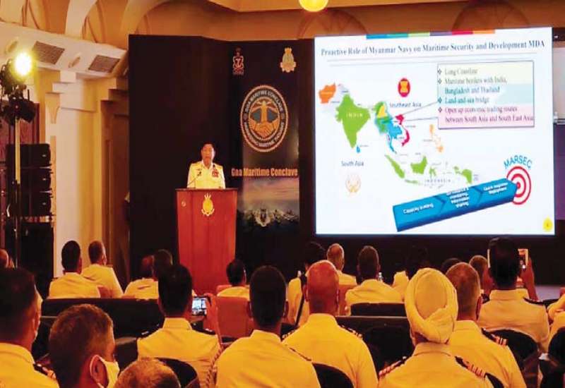 အိန္ဒိယနိုင်ငံ၊ ဂိုအာမြို့တွင် (၃) ကြိမ်မြောက် Goa Maritime Conclave 2021 (GMC-2021) ကို နိုဝင်ဘာလ ၇ ရက်နေ့မှ ၉ ရက်နေ့အထိ ကျင်းပပြုလုပ်ခဲ့ရာ ကာကွယ်ရေးဦးစီးချုပ်(ရေ) ဗိုလ်ချုပ်ကြီးမိုးအောင် ဦးဆောင်သည့်ကိုယ်စားလှယ် အဖွဲ့တက်ရောက်ခဲ့သည်။