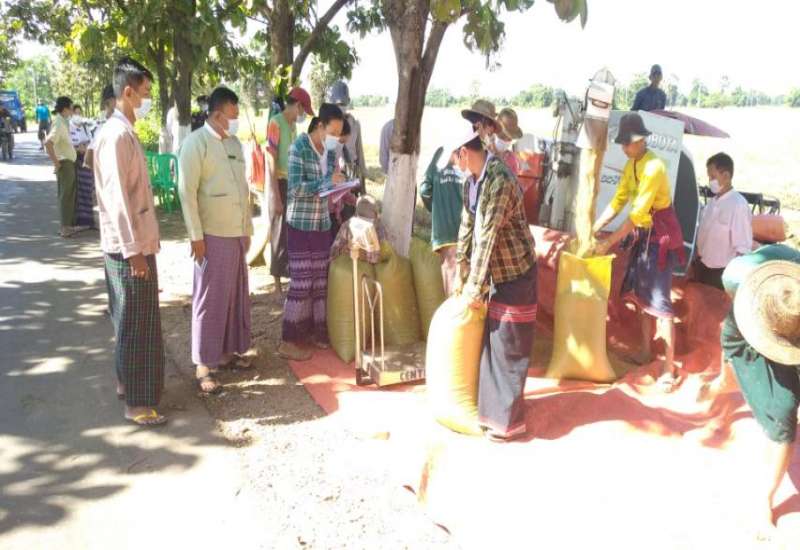 ပဲခူးတိုင်းဒေသကြီး တောင်ငူခရိုင် ကျောက်ကြီးမြို့နယ် မအူပင်ဆိပ်ကျေးရွာအုပ်စု ကွင်းအမှတ်(၇၀ (ခ)ဦးပိုင်အမှတ်(၅၆ /၄) ရွာကြီးအင်းကွင်း၊ ဧရိယာ (၆.၅၈) ပေါ်ရှိ ဒသမ(၁၀) ဧရိယာ တောင်သူ ဦးအောင်မြင့် လယ်မြေတွင် မိုးစပါး အထွက်နှုန်း မှန်ကန်စေရေးကို ရည်ရွယ်ပြီး နိုဝင်ဘာ ၃ ရက် နံနက် ၁၀ နာရီက စိုက်ပျိုးရေးဦးစီးဌာန မြို့နယ်ဦးစီးမှူး ဦးမောင်မောင် ဦးဆောင်ပြီး ဆင်းသုခမျိုးစပါး စံကွက်ရိတ်သိမ်းခြင်းကို ကွင်းဝန်ထမ်းများက ပြုလုပ်ခဲ့သည်။