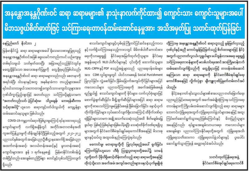 အကြမ်းဖက်အဖွဲ့ဖြစ်သည့် NUG အဖွဲ့သည် မြန်မာနိုင်ငံအတွင်း အကြမ်းဖက် လုပ်ငန်းများကို စတင်ဆောင်ရွက်ရန် စက်တင်ဘာလ ၇ ရက်တွင် ကြေညာခဲ့ပြီးနောက် လမ်းပန်းဆက်သွယ်ရေးခက်ခဲသည့် ချင်းပြည်နယ်နှင့် စစ်ကိုင်းတိုင်းဒေသကြီး အတွင်းရှိ အချို့ဒေသများတွင် အကြမ်းဖက်မှုလုပ်ရပ်များကို ဦးတည်လုပ်ဆောင် လျက်ရှိသည်။ ထိုသို့အကြမ်းဖက်လုပ်ရပ်များ လုပ်ဆောင်လျက်ရှိရာတွင် ဒေသခံပြည်သူလူထုအတွက် လမ်းပန်းဆက်သွယ်ရေးနှင့် ကျန်းမာရေးကိစ္စရပ်များ အတွက် အလေးထားအသုံးပြုလျက်ရှိသော လမ်းတံတားများအား ဖောက်ခွဲဖျက်ဆီးခြင်း၊ အပြစ်မဲ့ပြည်သူလူထုအား စိုးရိမ်ထိတ်လန့်စေ၍ မြို့၊ ရွာများတွင် မနေထိုင်ရဲစေရေး မြို့၊ ရွာများအား မီးရှို့ဖျက်ဆီးခြင်းများအပြင် ဒလန်ဟုစွပ်စွဲ၍ သတ်ဖြတ်ခြင်းများကို လုပ်ဆောင်လျက်ရှိသည်။